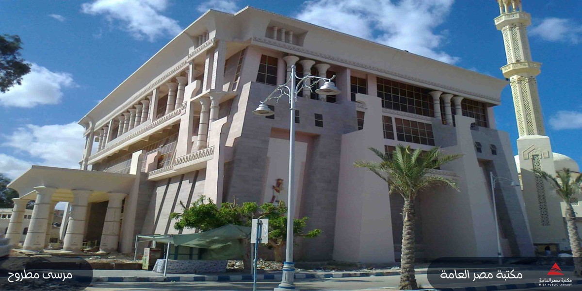 تاريخ افتتاح المكتبه 24 مارس 2015 تقع المكتبة علي مساحة 1560 متر مربع التصميم الخارجي لها يتسم بالطابع الفرعوني وتعد من المكتبات المميزه على مستوى الجمهوريه. فهي تتكون من خمسة طوابق : الطابق الارضي .. يضم متحف التراث البدوي : صمم هذا المتحف من بيئة مطروح ليظهر روعة تراثها ، ويضم المتحف عدد من الاقسام اهمها .. قسم العمارة : يضم نموذج للبيت البدوي وهو عبارة عن خيمه كبيره بها حجرتين ويوجد داخل البيت مربوعه للجلوس عليها. قسم الازياء والحلى : يحتوي علي نماذج مختلفه من الاثواب البدويه المطرزه والمشغوله و ادوات الزينه من قلادات و روابط جبهة واعقاد متميزه .